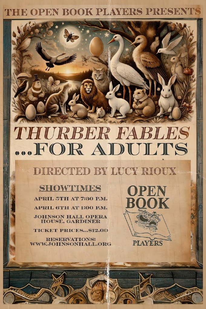 OIN US THIS COMING WEEKEND AT JOHNSON HALL OPERA HOUSE IN GARDINER FOR “THURBER FABLES…FOR ADULTS”!